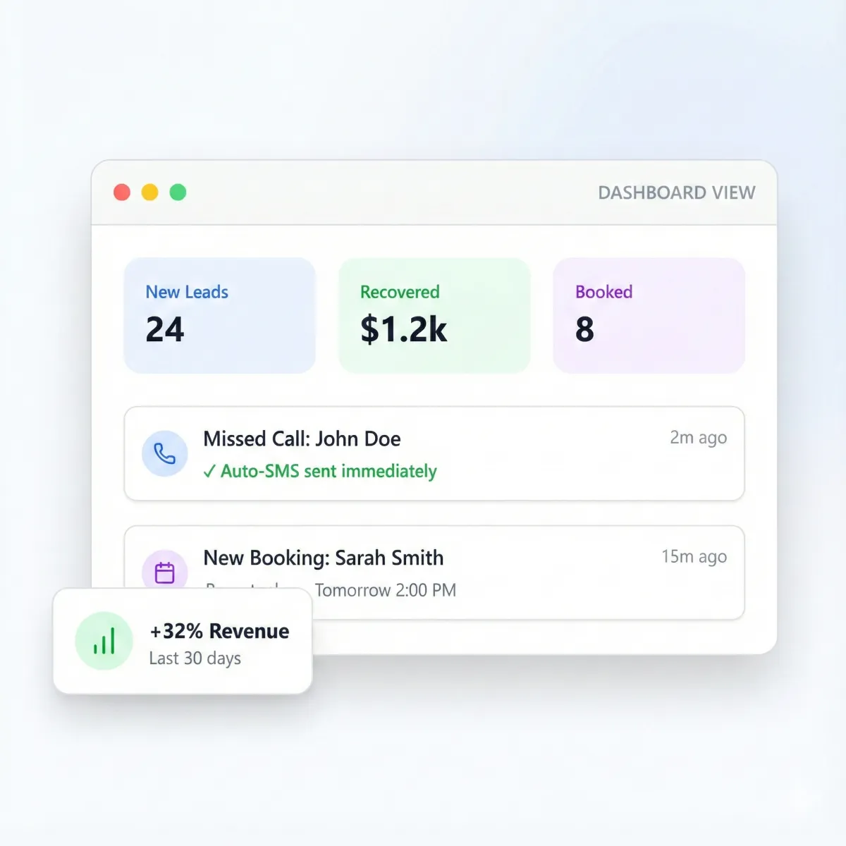 Miss a call? The system texts back instantly to recover the lead and book the appointment.